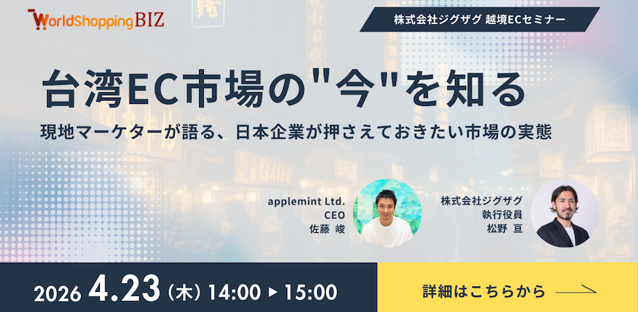 本ウェビナーはEC事業を運営する方向けに、越境ECを始めさらに売上を伸ばし事業拡大をしていただくための考え方を年商1億円超を売り上げた経験を持つ越境EC事業責任者&店長経験者3名とWorldShopping BIZの鈴木賢を交えてディスカッションする内容となっております